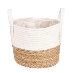2-farbiger Wohnkorb Mit Folieneinsatz, Seegrasgeflecht Und Jute, Weiß, 26 Cm