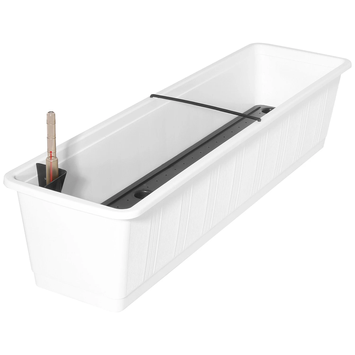 Der Bewässerungskasten ‚Aqua Green‘ in der Farbe weiß ist Ihre komfortable Möglichkeit, die Pflanzen punktgenau und jederzeit mit Wasser zu versorgen. Diesen innovativen Bewässerungskasten erhalten Sie inklusive eines praktischen Wasserstandanzeigers. Das Modell überzeugt mit einem hohen Wasservorrat und optimal strukturiertem Pflanzraum.