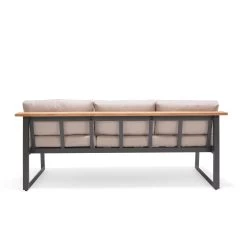 Genießen Sie einen Blick ins Grüne und profitieren Sie dank der Dining-Bank ‚Jimmy‘ von ausgezeichnetem Sitzkomfort. Der Dreisitzer im angesagten Industrial Style überzeugt mit einem höhenverstellbaren Rückenteil und ist in der Mitte bis zu einem Gewicht von 160 Kilogramm belastbar. Die witterungsbeständigen Auflagen mit Bezug aus Olefin sind im Lieferumfang inklusive.