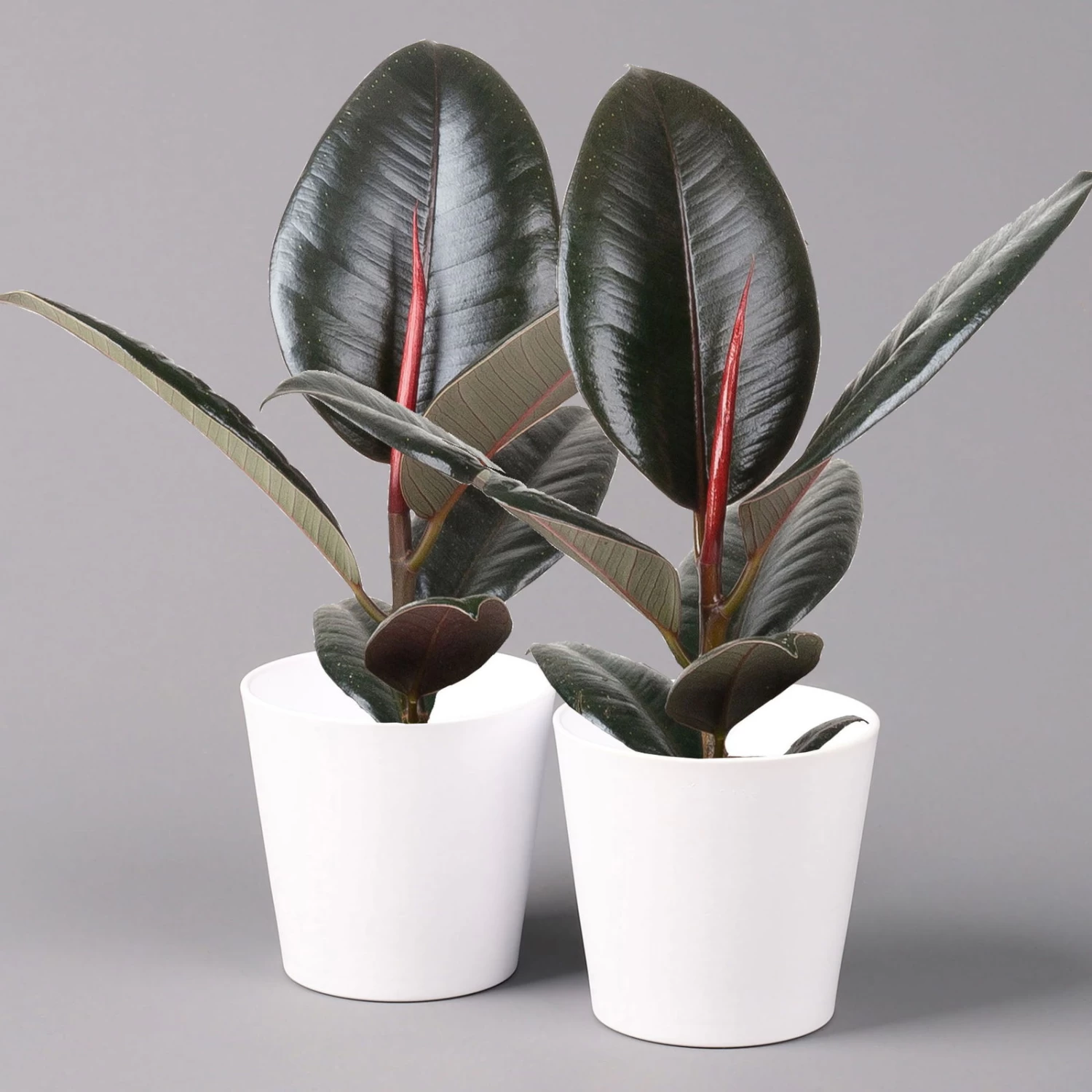 Der Ficus elastica ‚Robusta‘ begeistert mit großen, ledrigen Blättern und gilt als besonders widerstandsfähig. Der anspruchslose Gummibaum, so der deutsche Name dieser Trendpflanze, lässt sich mit gleichem Erfolg zur Begrünung von Büros, Arztpraxen oder Wohnräumen einsetzen. Ein Ficus ist eine richtige Wohlfühlpflanze, da dieses Tropengewächs der Luft unterschiedliche Schadstoffe entzieht und somit für ein besseres Raumklima sorgt. An den Standort stellt der Ficus elastica ‚Robusta‘ keine allzu hohen Ansprüche, denn der Gummibaum gibt sich sowohl mit hellen als auch mit halbschattigen Lagen durchaus zufrieden. Problematisch können neben einem Überfluss an direkter Sonne noch Zugluft und Staunässe sein. Auf Wunsch dürfen Sie Ihren Ficus gerne in der warmen Jahreszeit an einem windgeschützten Standort im Freien pflegen. Bitte beachten Sie, dass der Milchsaft des Gummibaumes giftig ist.
