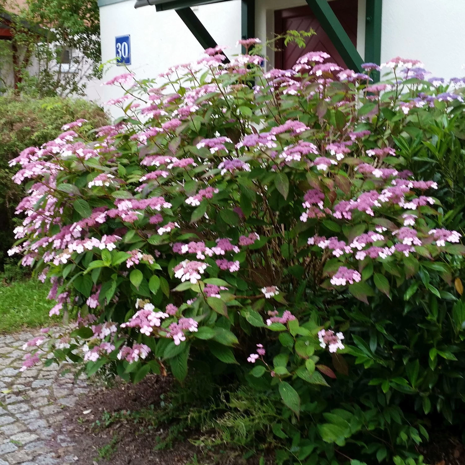 Die robusten Berghortensien bilden viele kleine bis mittelgroße Blütendolden aus, die gern von zahlreichen Insekten besucht werden.