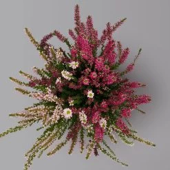 Die dreifarbigen Kölle’s Beste Knospenheiden ‚Trio‘ erfreuen mit einer langen Blütezeit von Juli bis November/Dezember. Da die Blütenknospen geschlossen bleiben, kann die Knospenheide Regen und nächtlichen Minustemperaturen gut standhalten und blüht bis in den Winter.