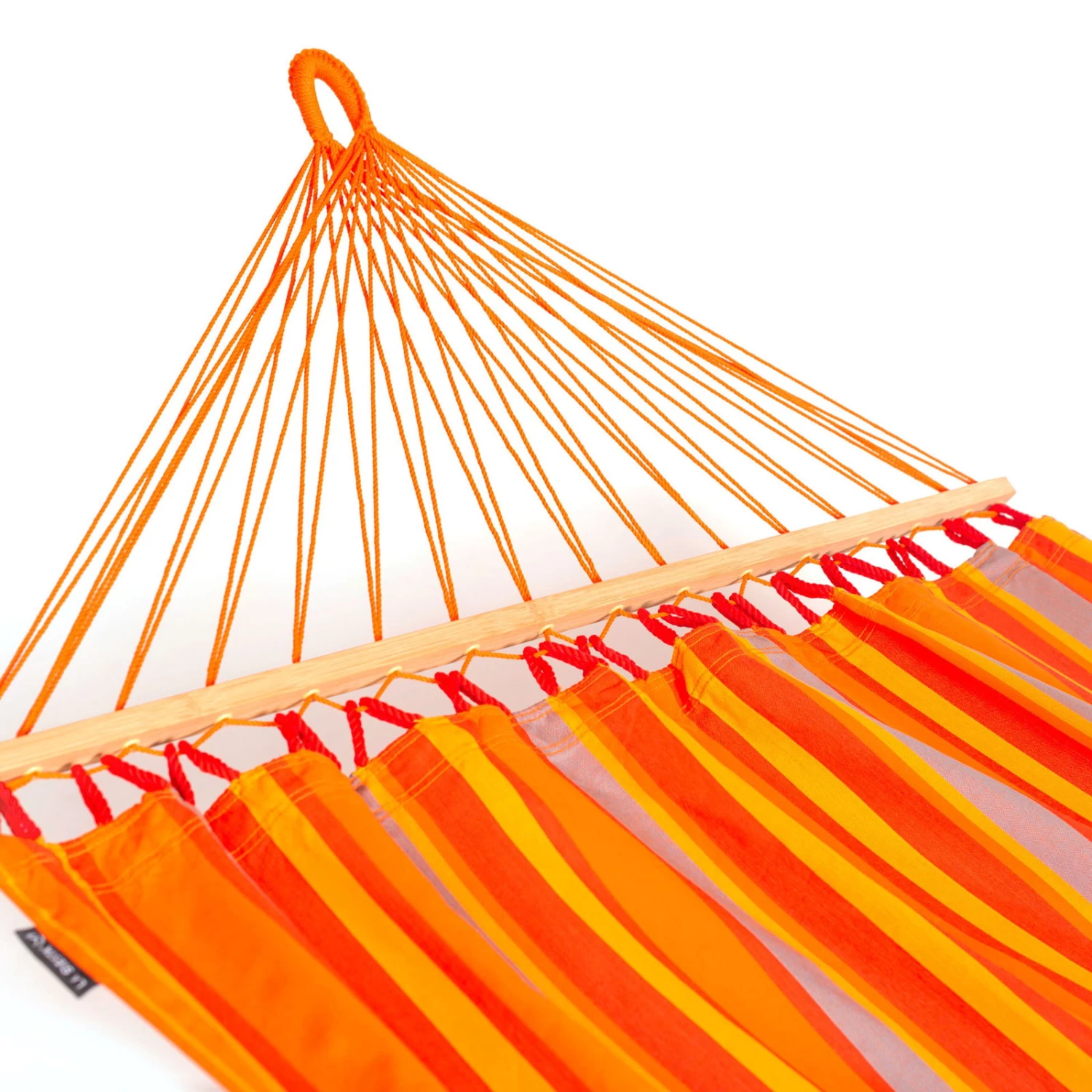 In der Doppel-Hängematte Alisio von La Siesta lässt es sich perfekt zu zweit oder allein abhängen. Die Stab-Hängematte sorgt für ein offenes Komfortgefühl.. Spannen Sie die Hängematte Alisio zwischen zwei Bäumen oder nutzen Sie ein spezielles Gestell. Sie profitieren zusätzlich von der outdoortauglichen, pflegeleichten und robuster Kunststofffaser.