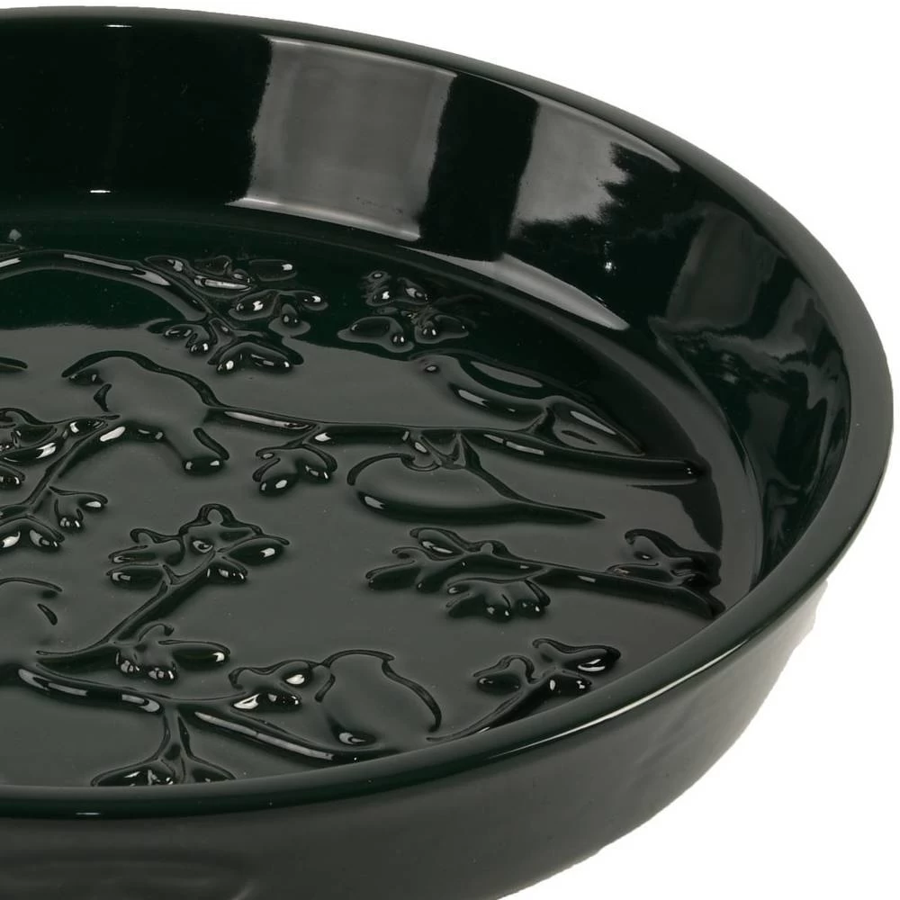 Diese Vogeltränke ist mit einem eleganten Keramik-Relief versehen. Sie besteht aus robustem Steinzeug und hat eine praktische Größe von 27,9 x 27,9 x 4,5 cm. Dank ihrer cleveren Formgebung lädt sie Vögel zum Trinken und Baden ein. Alternativ können Sie die Tränke als Futterschale für Vögel oder Eichhörnchen nutzen.